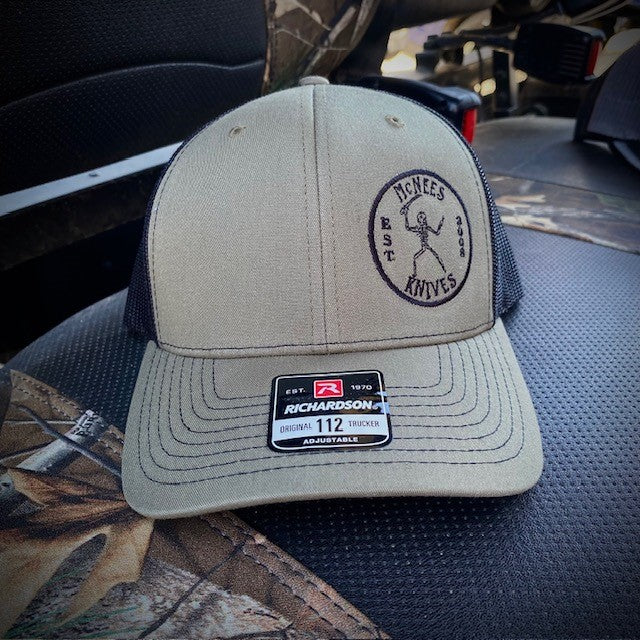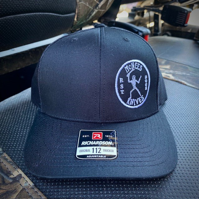 Love that they use Richardson's for their hats - as they are a slightly bigger made hat unlike most - and my hubby has a bigger head and it actually fits well (where some other snapbacks don't fit at all or he has to use the last available snap hole which makes it angle weird) so he is EXTREMELY happy!! He likes to have a hat that he wears to visibly support the knife makers he loves!!